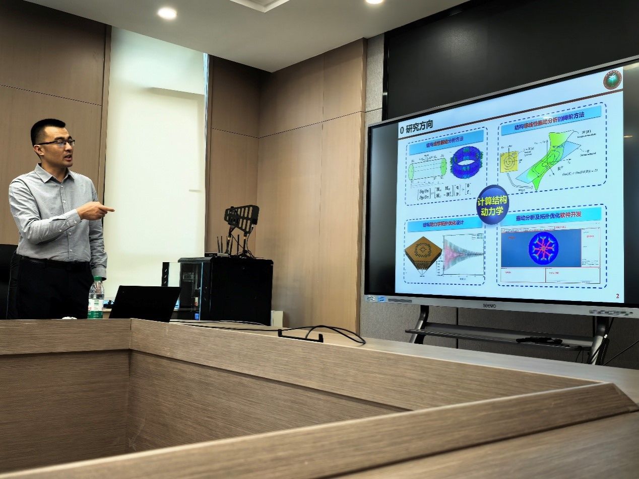 报告中,高汝鑫副教授首先系统梳理了计算结构动力学领域的相关研究进展,他重点阐述了融合多层级设计理念与拓扑优化方法的创新结构设计范式,如何能够突破传统均质结构的设计极限,实现对基体材料力学性能的最大化利用。