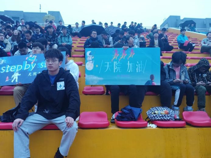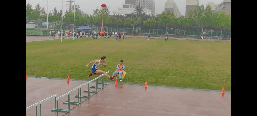 同学的呐喊,队友的鼓励,都是健儿们冲向终点的不竭动力。迎着雨水向前冲,每一滴汗水,每一次拼搏,运动场永远都不会忘记。