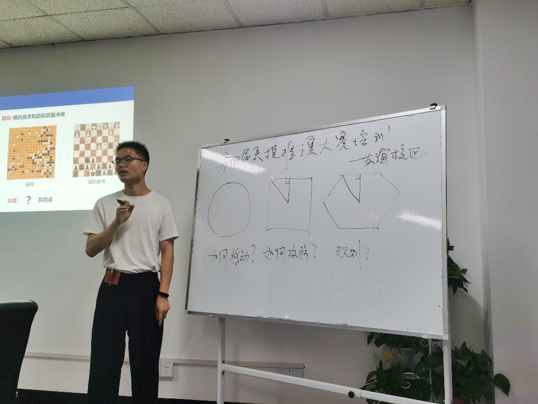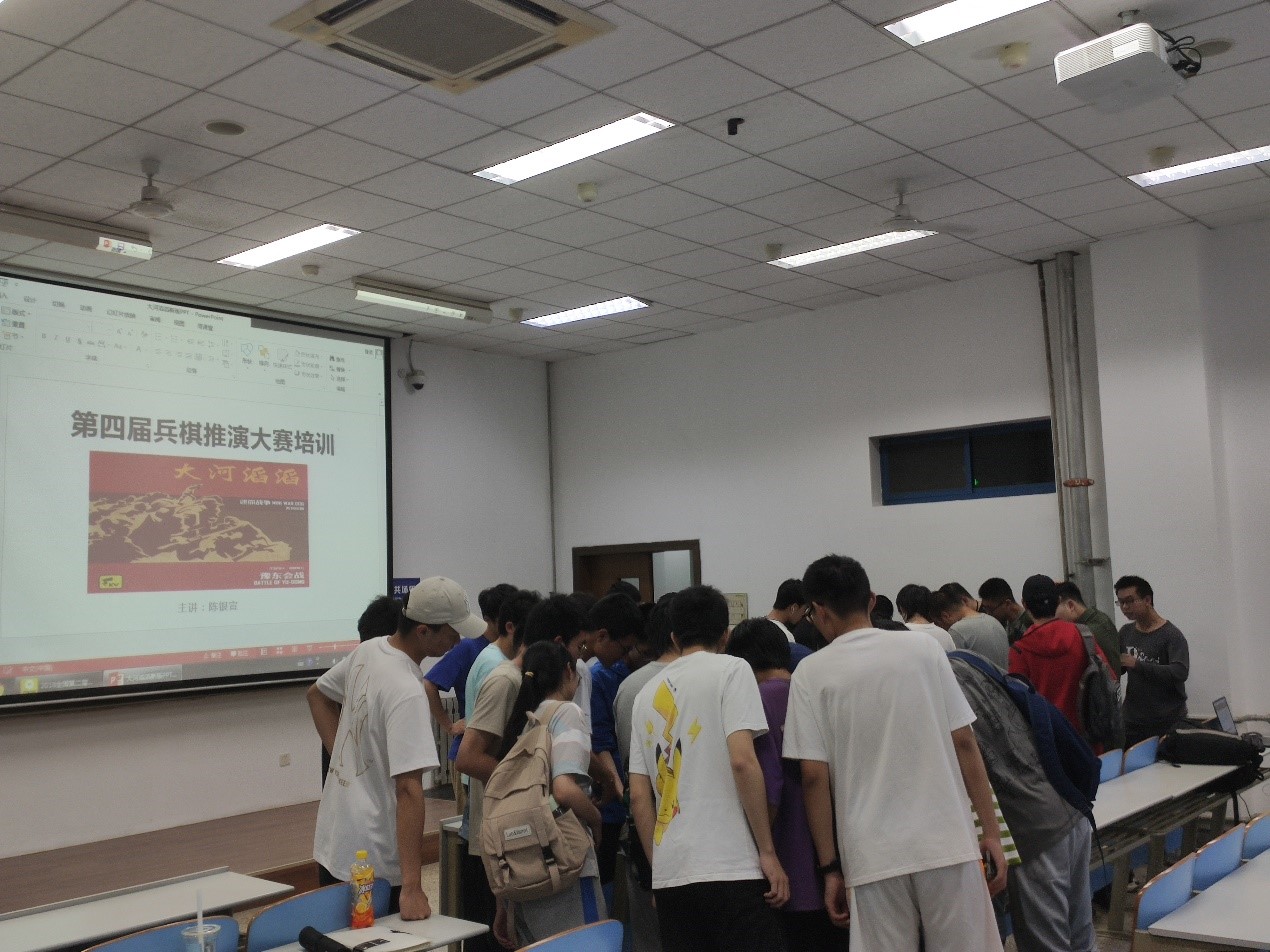 5月27日至28日,大赛组委会在两校区分别开展两场培训动员活动,培训活动由大赛总导演刘双喜主持。刘双喜以“小棋子,大谋略”为主题,分别从“兵棋推演的发展、兵棋推演系列活动、兵棋+文化建设”三个方面为大家进行科学详细的讲解,深入浅出的向大家介绍了兵棋推演的内涵,激发起大家浓郁的兴趣。分赛区裁判长结合比赛所用兵棋的背景想定、推演规则进行了详细说明。“战车突进,合围全歼;机动迂回,侧翼进攻”,大家纷纷被兵棋推演的魅力所吸引。