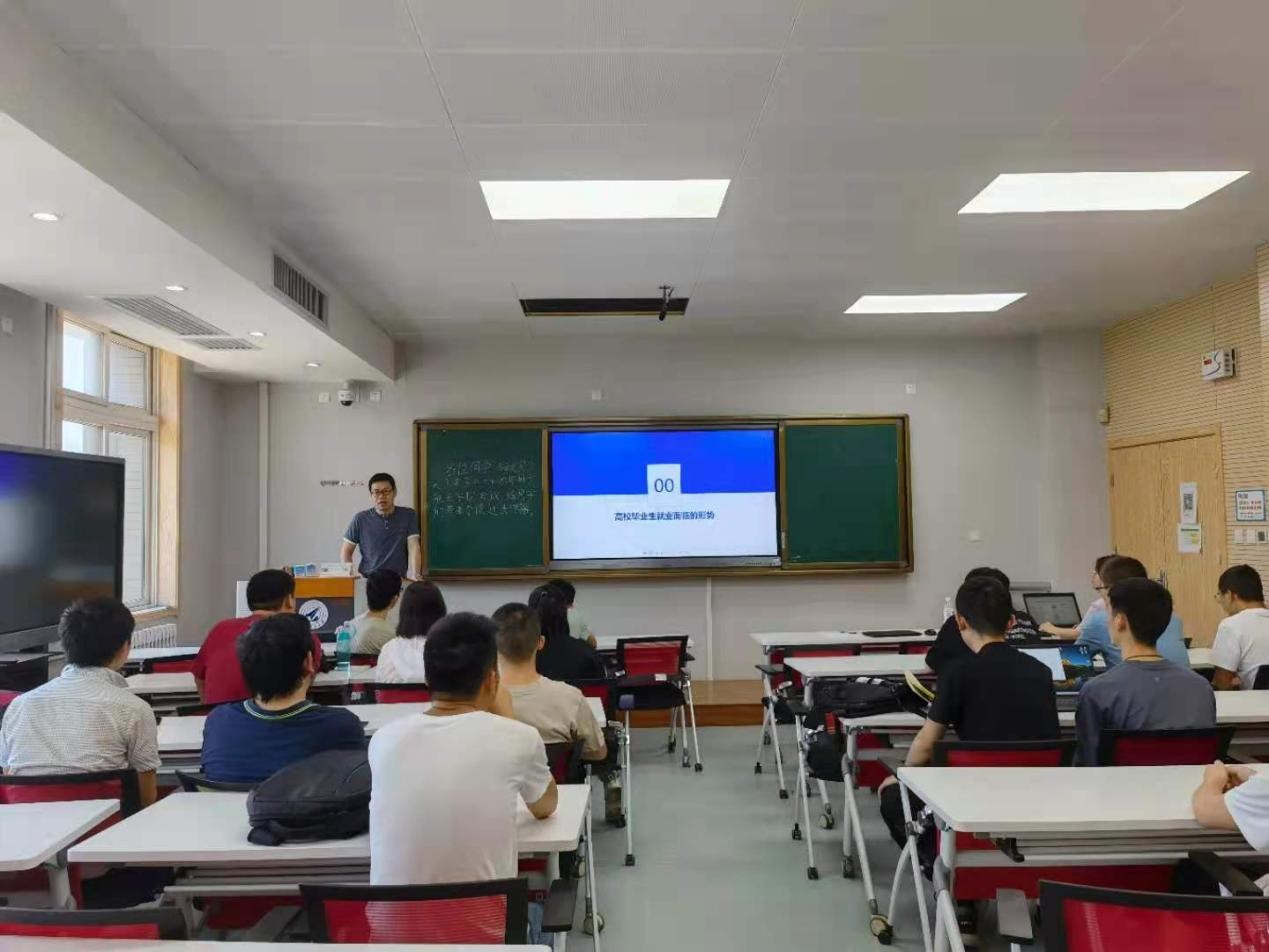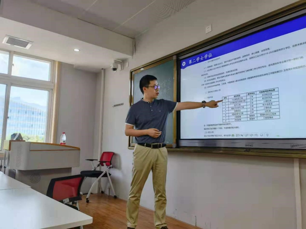首先,副书记韩冬为同学们做了《就业形势研判》报告。基于近年我国高校毕业生、留学归国、待业准备就业的大学生数量等数据,分析了目前毕业生所面临的严峻的就业形势。结合我院毕业生实际,对比了有业不就和无业可就问题的产生原因,结合航空航天类院所企业的招聘情况,引导大家思考人生方向,做好人生规划。随后,就今年学校关于科研助理和第二学位的政策给同学们进行了详细的讲解,对学校第二学位政策进行深入剖析,鼓励同学们利用好学校的政策。