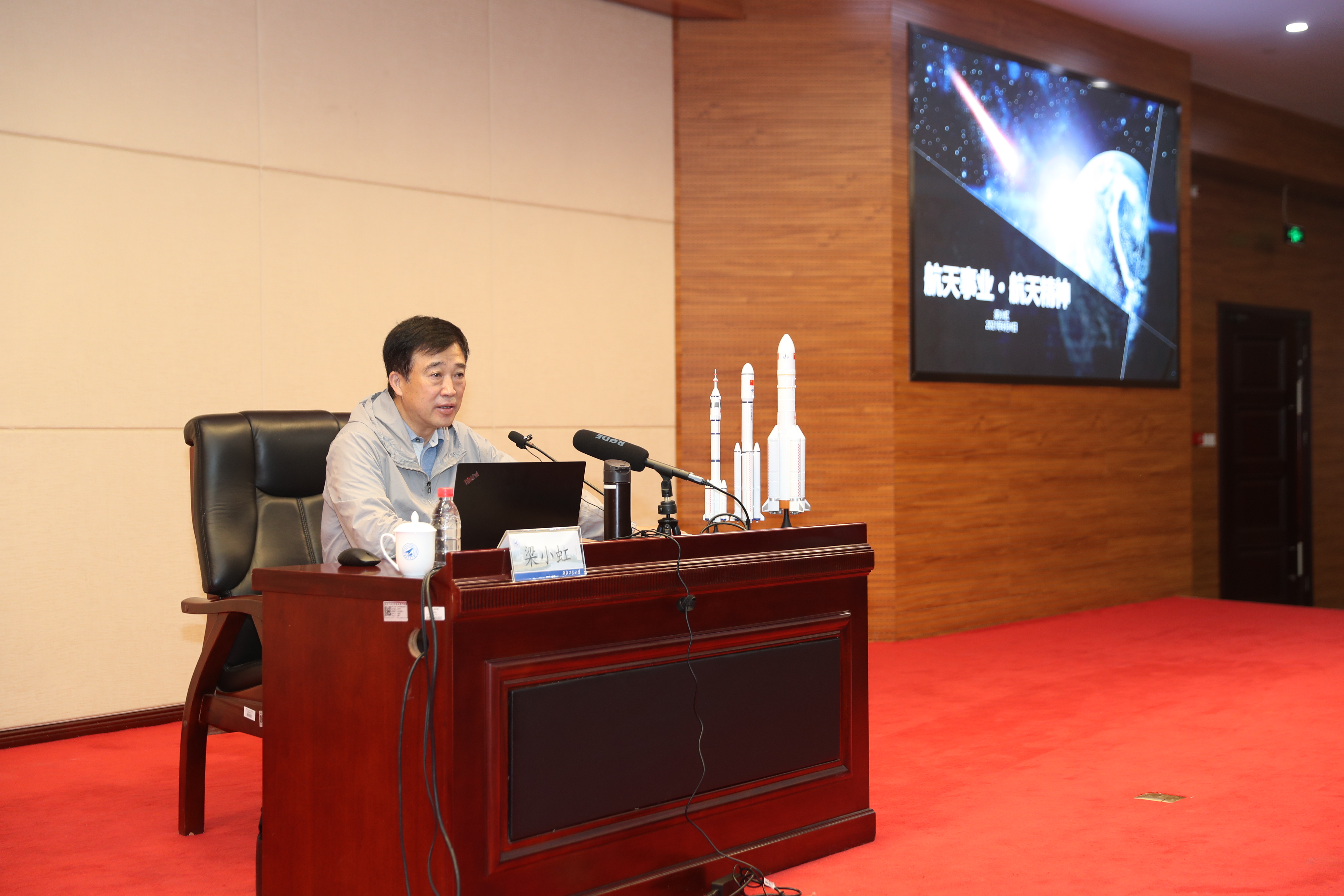梁小虹书记首先做了“航天事业与航天精神”的主旨报告,从理想与未来、航天事业和航天精神、航天梦和强国梦三个部分,用生动的语言讲述了中国航天的历史沿革、创新之路,中国航天精神的基因、根基和核心要义。