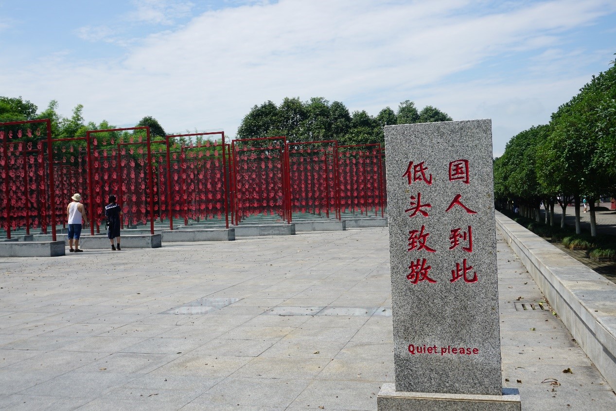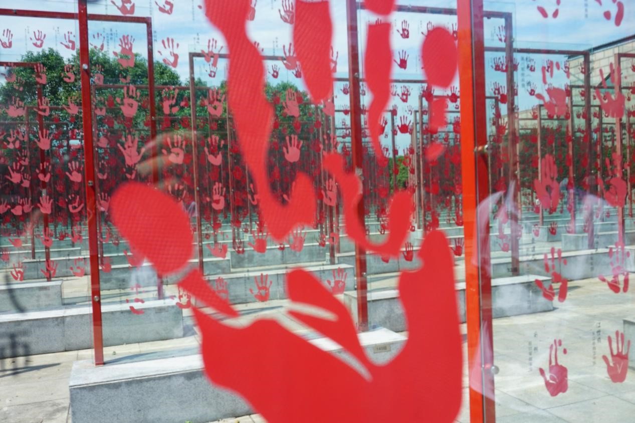 沿路进入馆内,首先经过的便是中国老兵手印广场。那一个个强劲有力的掌印,那一排排鲜红的血印,错落有致的陈列在广场上。毋庸置疑,每一个掌印背后都有一个故事,一段传奇的事迹,他们的故事不会被时间冲淡,那一个个血印也会永远的屹立在建川博物馆的老兵手印广场。