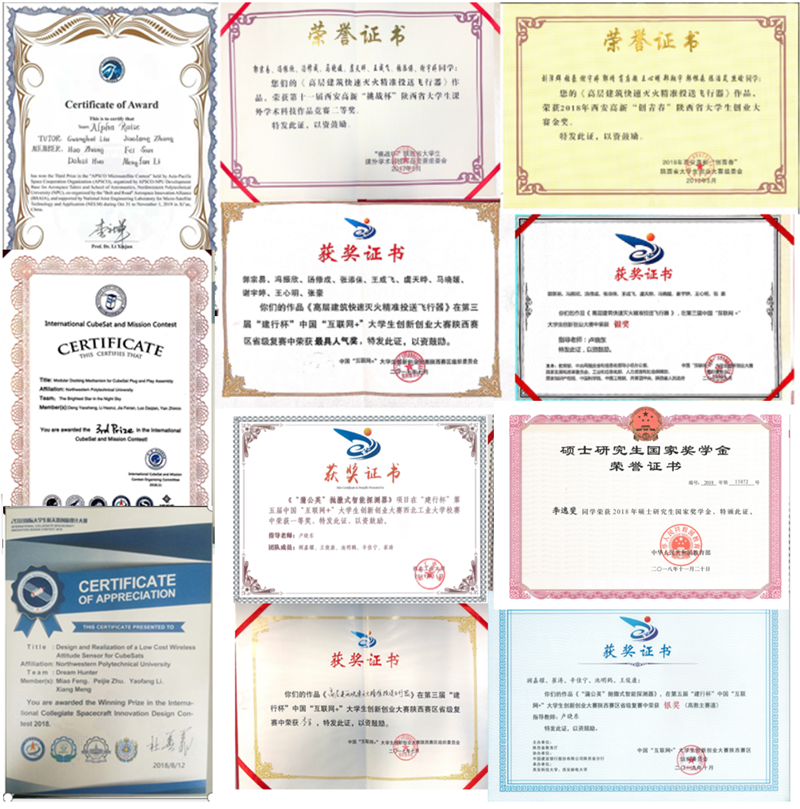 支部依托微小卫星专业方向,在育人才、激活力、提质效三个方面积极创新,推动科研育人工作驶入“快车道”。支部党员累计申请专利3项、其中授权1项,发表论文13篇、其中SCI收录9篇。在科研竞赛上,获得获省部级奖项7项,获国际级奖2项。2018年“翱翔”微小卫星团队斩获全国大学生“小平科技创新团队”(青少年科技创新领域国家级最高荣誉)、2013-2019年,连续7年获得全校研究生优秀导学团队、2020年7月获批西北工业大学首批科研育人示范团队等多项团队奖项。