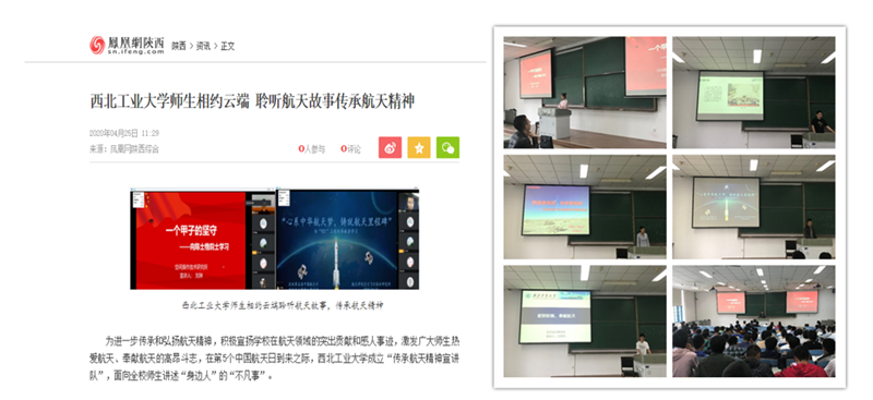在服务社会方面,支部持续开展社会主义核心价值观教育,扎实推进志愿服务常态化,积极参与航天精神事迹宣讲团,通过线上线下相结合的宣讲形式,面向校内外近千名师生党员进行专题宣讲,传承和弘扬航天精神,相关事迹受到陕西新闻联播、凤凰网、西部网等媒体的报道。在2020年中国航天日,党支部制作视频《沐浴东方红光,拥抱星辰大海》被刊选到学习强国平台,受到广泛好评。