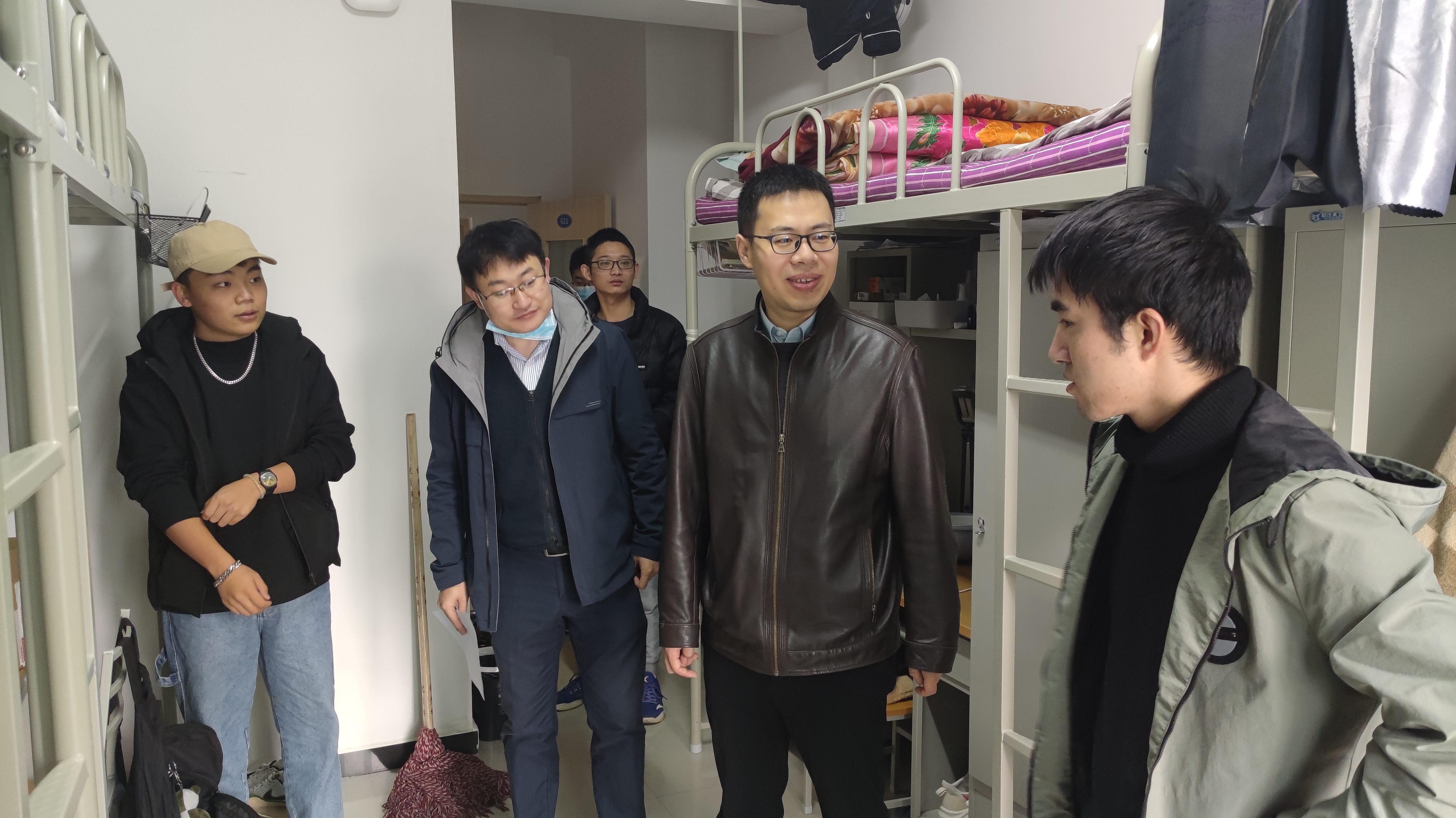 本次检查重点关注研究生宿舍的安全秩序状况,对违规电器使用、不及时断电、吸烟明火等安全隐患进行全面排查,同时对房间卫生状况、室内通风、个人物品摆放等情况进行查看。通过检查,宿舍卫生情况和安全秩序整体较好。韩冬向同学们强调了防火防电安全知识,要求同学们杜绝使用大功率电器,做到“人走电断”,督促大家增强安全意识,及时整改不符合规定的行为做法,切实保证自身生命财产安全,健康生活。此外,韩冬还深入了解学生的学习与生活情况,叮嘱大家要注意疫情防控,坚持填报个人健康每日报,不参加聚集性活动,遇到生活上的困难及时向学院老师报告。