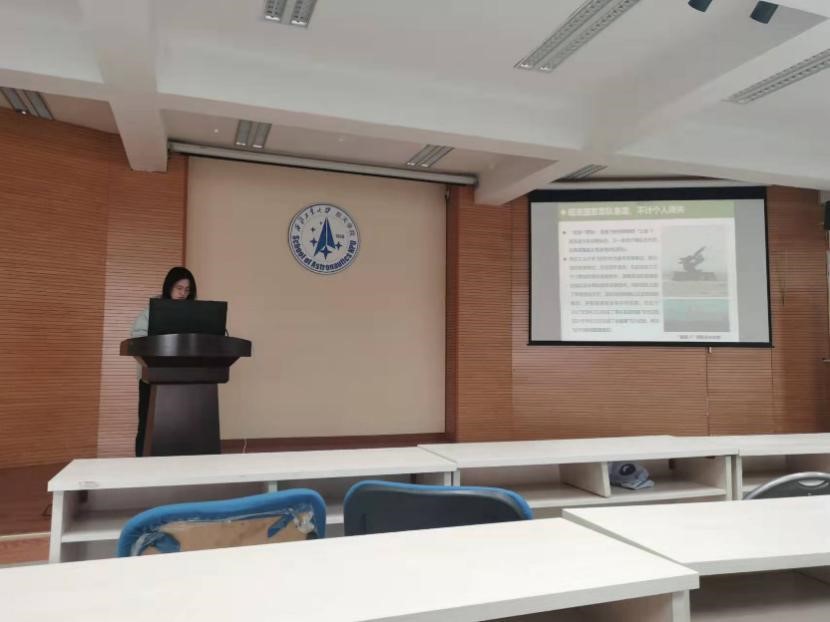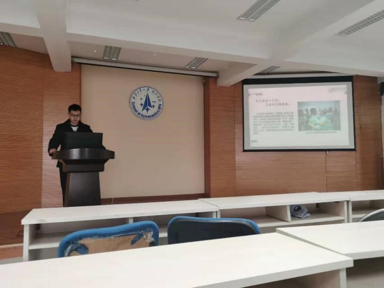 接下来,来自精确制导与控制研究所的董士涵同学介绍了西北工业大学“翱翔”系列微小卫星团队的发展历程。2016年,在微小卫星即将搭载长征七号运载火箭升空前,为了确保弹射器的正常工作,团队成员连续进行了一个礼拜的振动及冲击试验,每天都会忙到凌晨三四点;团队成员自参与该项目以来,记忆最深刻的“假期”就是“春节”,但也基本上是“睡”过去的,因为实在是“太困了”,这样的故事在微小卫星团队不胜枚举。正是有这种只争朝夕,奋勇拼搏的劲头,短短几年间,团队坚持自主创新、瞄准航天科技发展前沿,突破和掌握了一批核心技术,取得了一系列重大进展,终将微小卫星从想法变成了现实。使参与的同学们进一步走近航天、了解航天、感悟到航天研究中地拼搏精神。