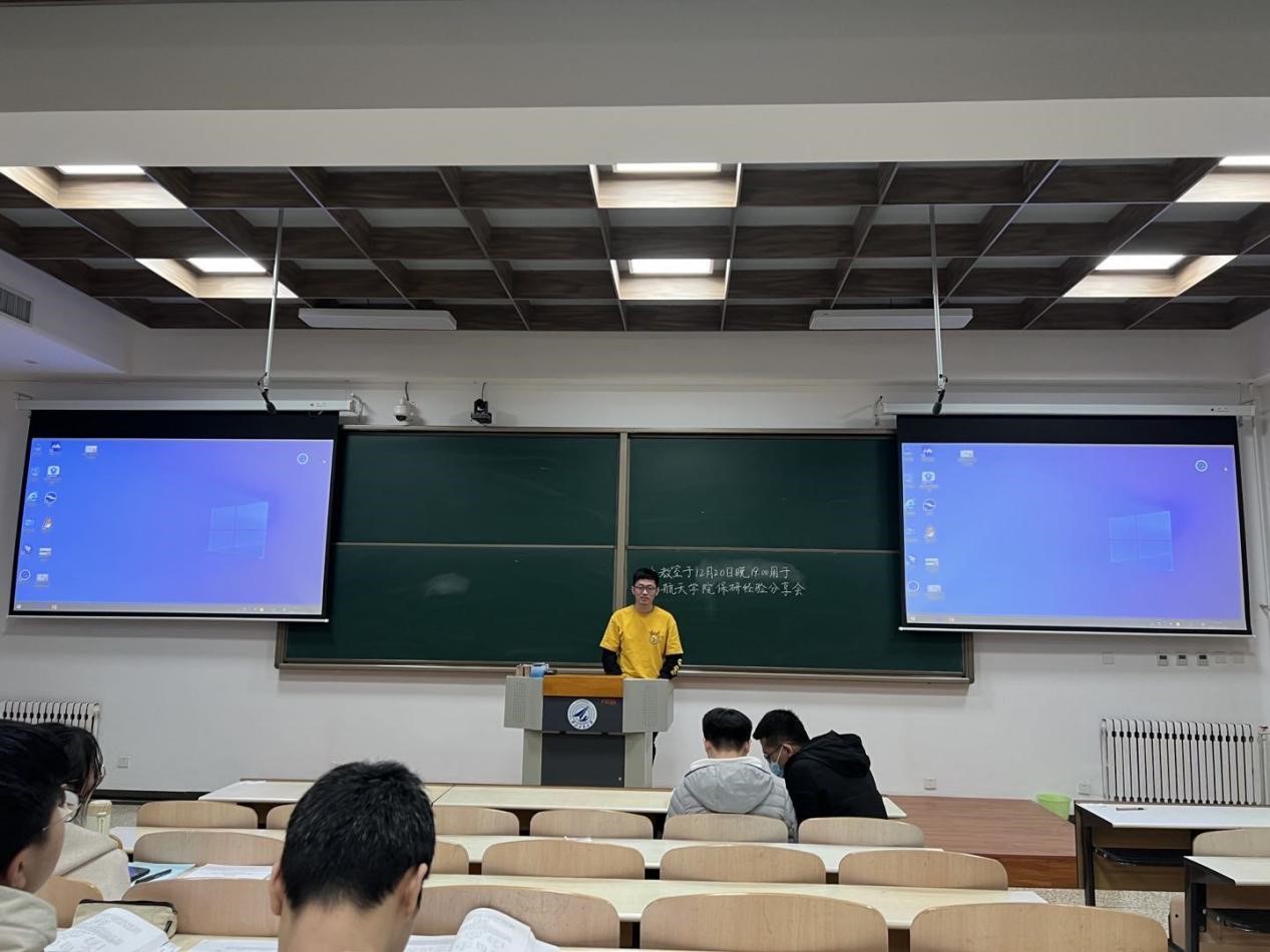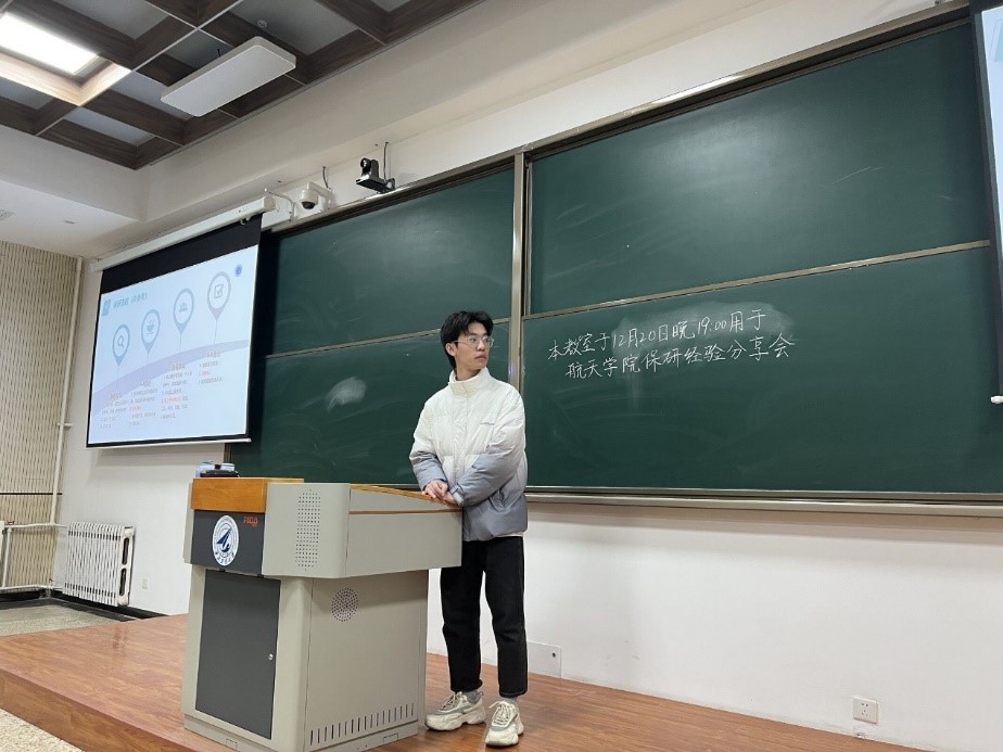 为使学生了解考研及保研信息,明确读研目的与目标,尽早做好生涯规划,12月20日,飞行器动力工程专业本科生党支部依托学院“百岗千人”学生党员奉献计划,面向飞行器动力工程专业同学开展了考研保研经验分享会。本次活动由4位已被研究生预录取的本科生主讲。分享会由焦佳富主持。