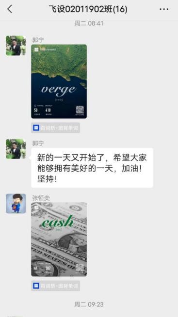 疫情严峻、宿舍封闭、考试推迟,但“停课不停学”,同学们依然坚持每天认真学习,提升自己,不因疫情而懈怠,为疫情结束后的考试做准备。在班主任郭宁老师的号召下同学们每天坚持背单词并在班级群打卡,来提前备战2022年的考研,郭老师也加入到学习队伍中,与大家一起努力。此外,同学们主动联系指导老师,参与各类科研创新活动,充实自己的隔离生活。