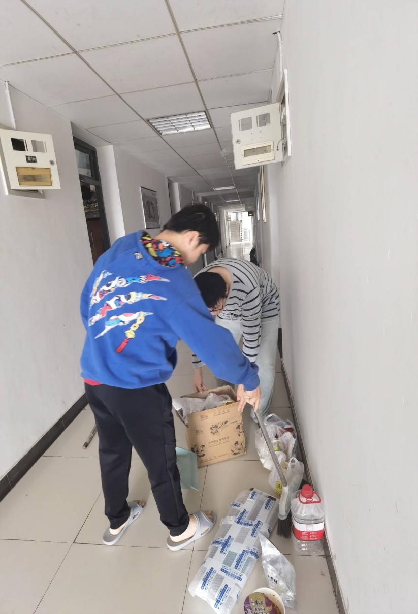 DL012114班李菁灏、刘浩飞同学在清理楼道杂物