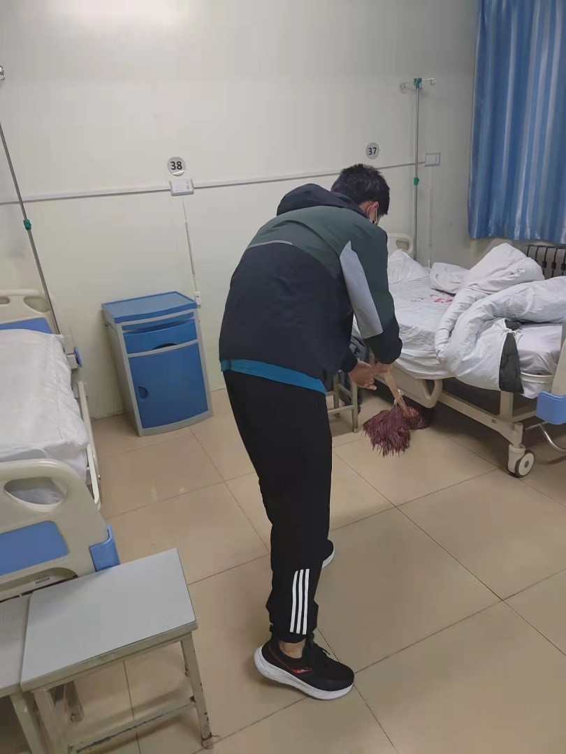 DL012114班刘鑫屿同学在医院义务打扫卫生