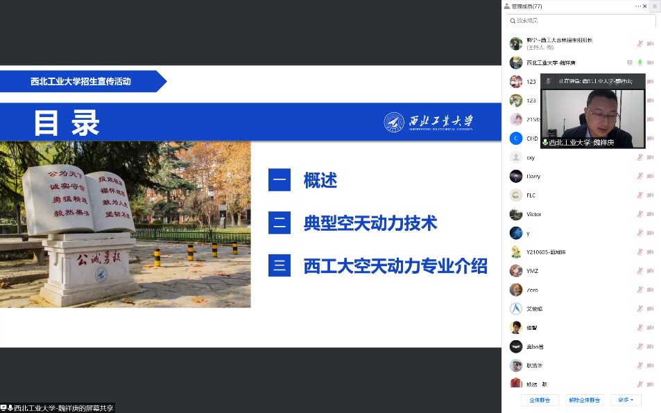 3月伊始,新冠病毒(奥密克戎变异株)疯狂席卷美丽的白山松水(吉林省),为了丰富吉林省的同学们在疫情期间的学习生活,进一步扩展同学们的知识面。西北工业大学吉林省招生组于2022年4月11日至4月17日在线上举办了四场航天知识科普报告和宣传讲座,取得了非常好的效果,受到了师生和家长们的欢迎!