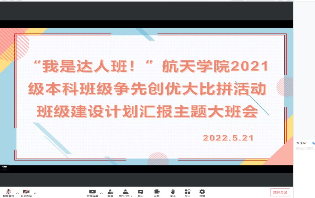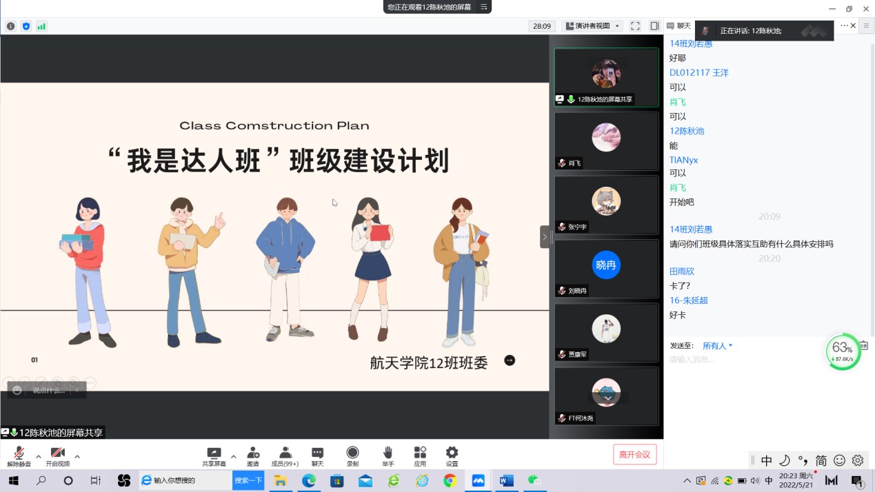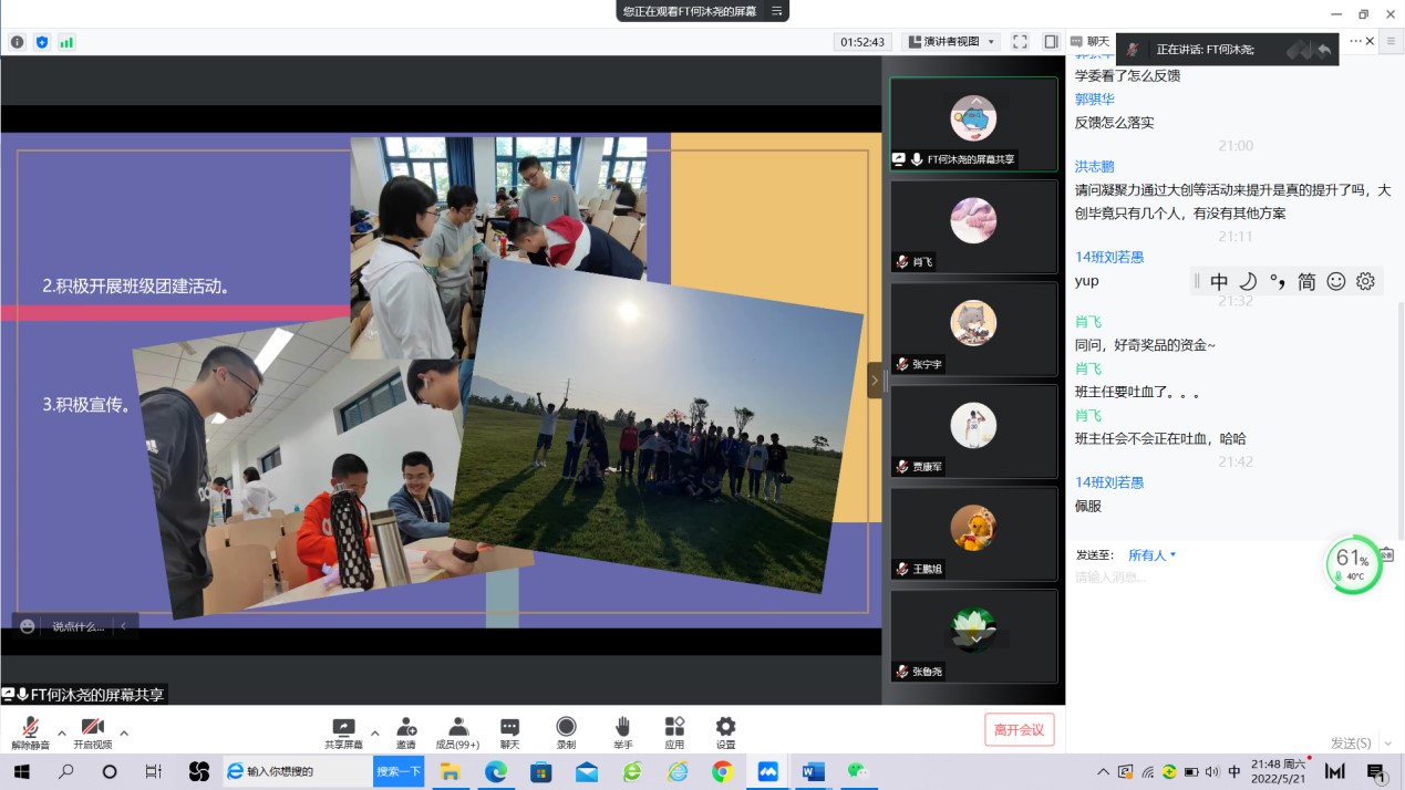 在线召开了本科2021级主题大班会,开展“我是达人班”班级争先创优大比拼活动,参会成员有台湾三级