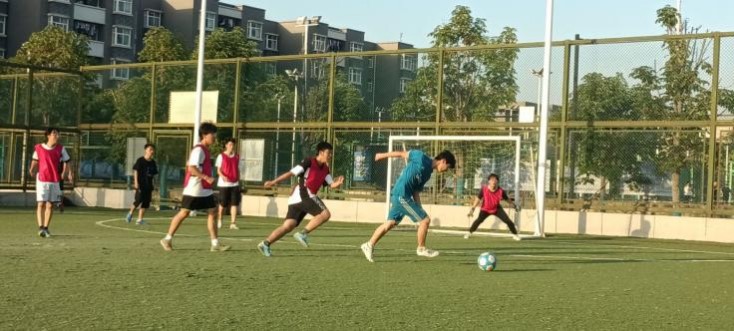 足球运动员们近一个月的刻苦训练,经小组赛淘汰赛几轮激烈的竞争、淘汰和筛选,6月1日,由大一飞天班和大二15班组成的A1队与大一18班和大二飞天班组成的A3队展开了季军争夺战,经过激烈的比赛,由马怡亮同学带领的A1队战胜了A3队,取得季军!