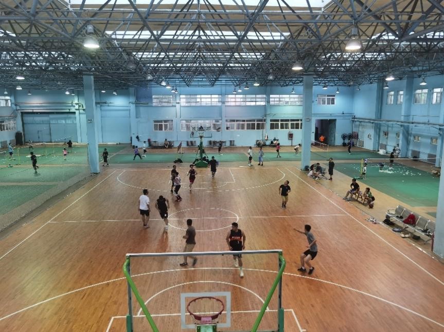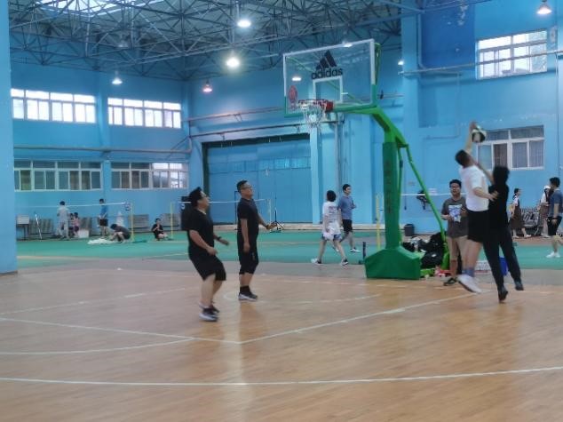 篮球场上,师生们热情高涨,在一次次快速突破与严密防守之间拿下得分,欢声笑语充斥着整个球场。尽管酷暑难耐,老师和同学们依旧坚持完赛。经过激烈的角逐,教师职工队获得最终胜利,赢得了台下观众的阵阵掌声,其余比赛也在轻松愉悦的氛围中有序进行。