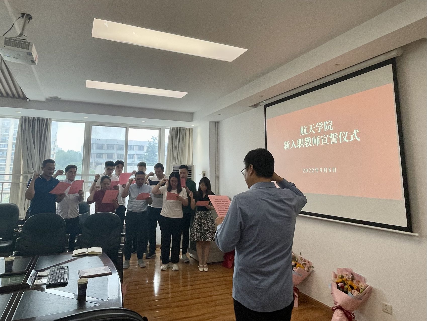 黄越带领与会教师进一步学习了习近平总书记关于教育的重要论述,重温了《新时代高校教师职业行为十项准则》。新入职教师举起右手,在孟中杰的带领下庄严宣誓。