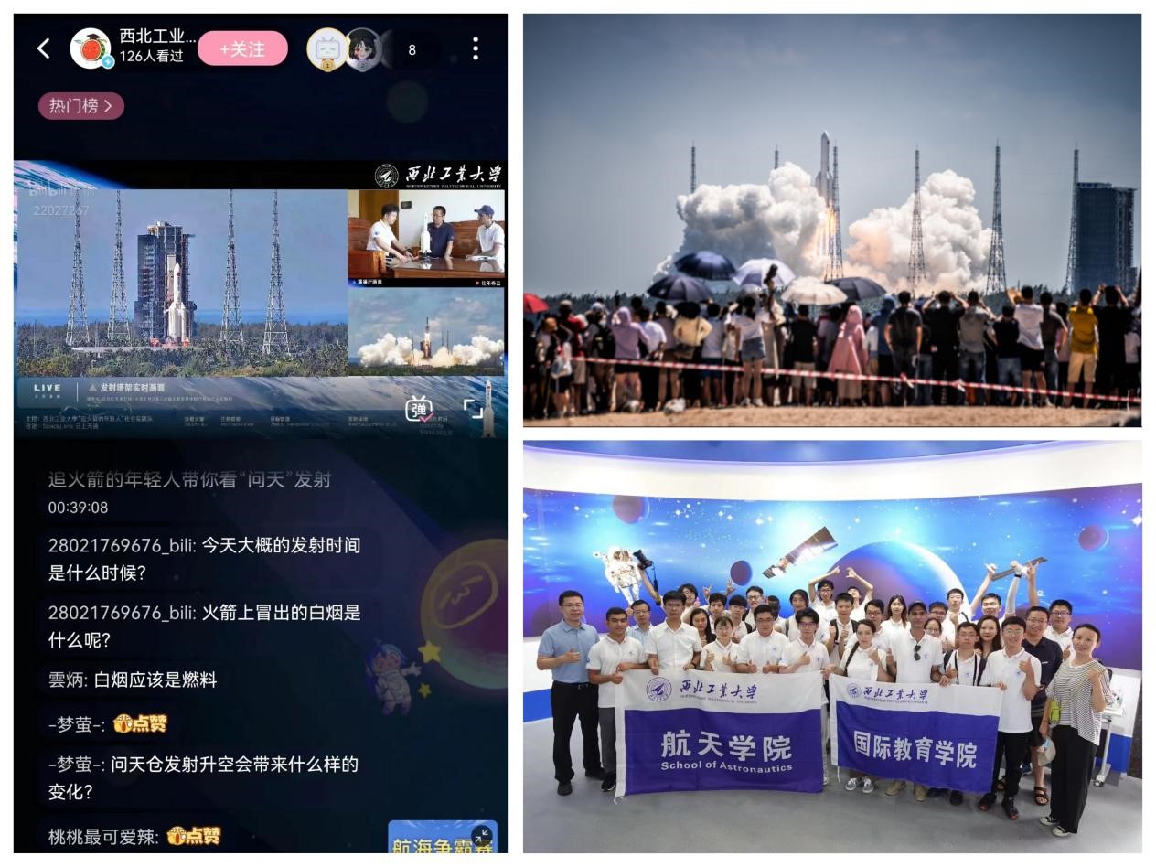 展——“新形象”,强化交流全方位展示航天形象。实践队在线全程直播发射过程,邀请载人航工业设计专家西工大苟秉宸教授与中外学生畅聊中国空间站的设计与建造,面向全球讲中国航天故事,分享和平利用太空、推动构建人类命运共同体理念,有亚、欧、非、美洲十余国家的国际学生观看直播,参与互动讨论,在交流中了解中国航天事业对世界航天的重要推动作用,也感受到了在和平利用太空中的中国智慧、中国方案。