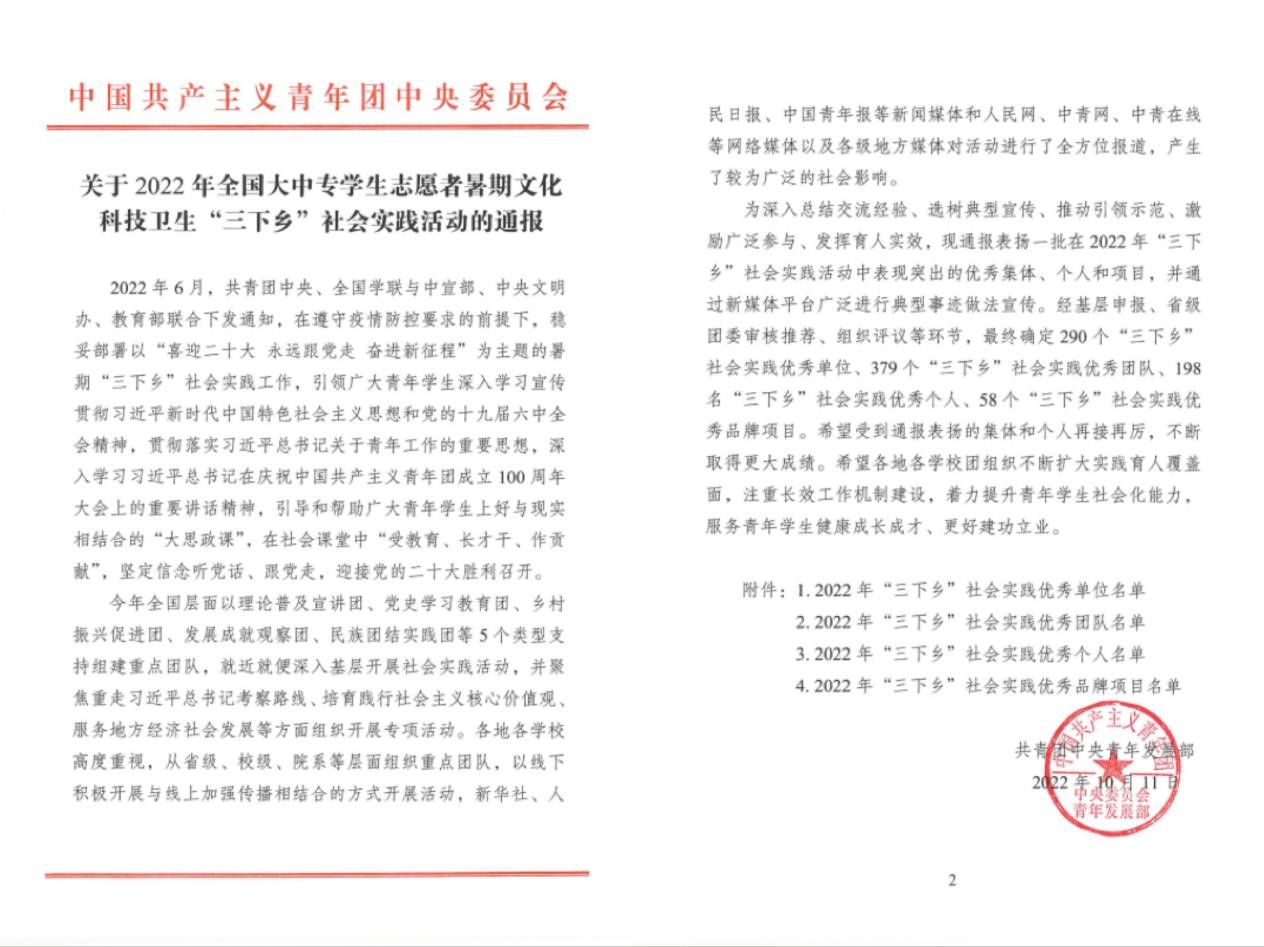 近日,2022年全国大中专学生志愿者暑期文化科技卫生“三下乡”社会实践活动通报结果揭晓,台湾三级