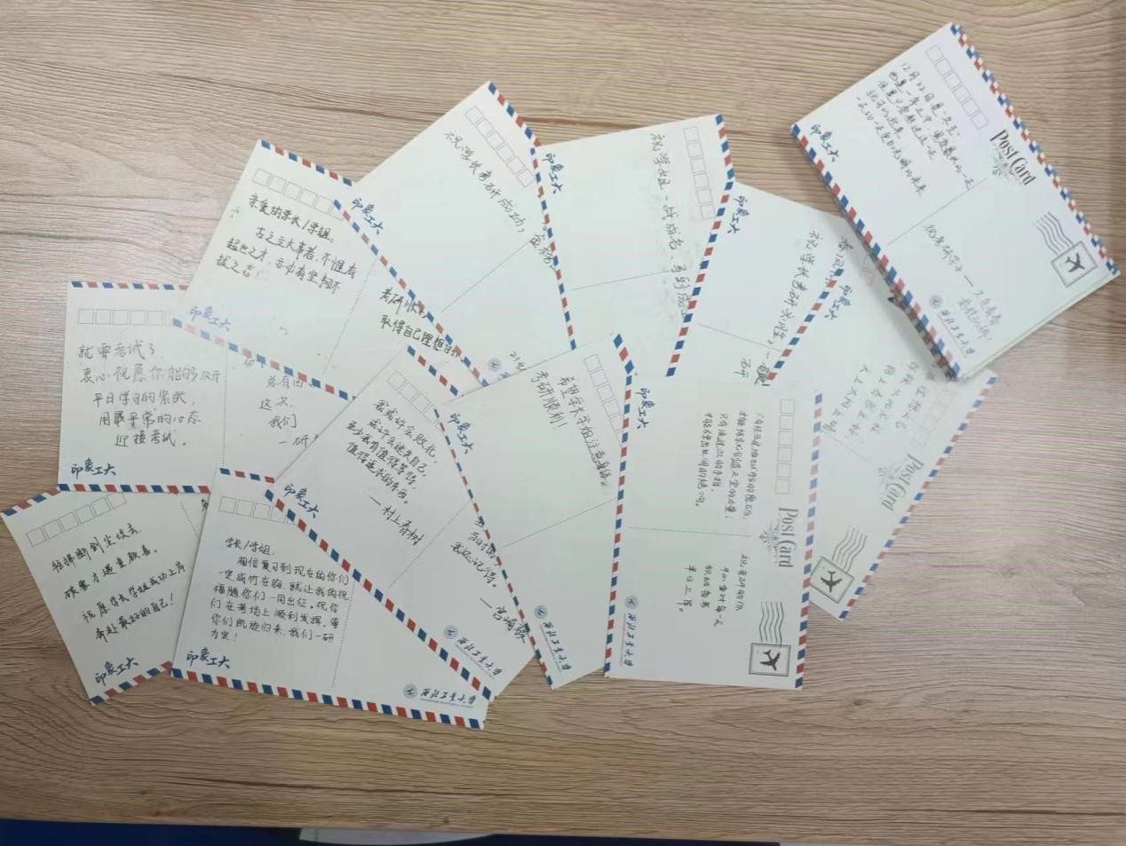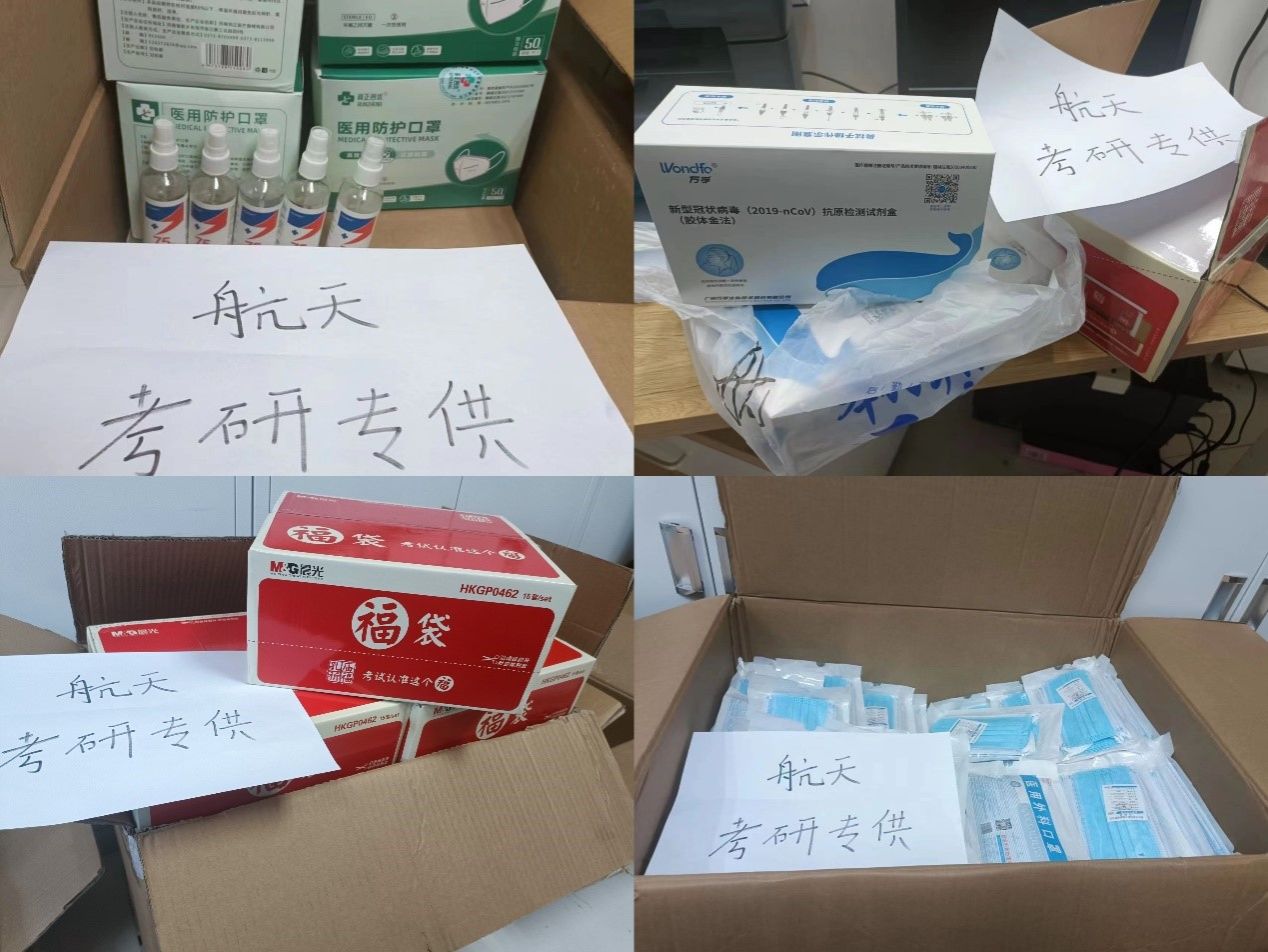 为2023届考研学子送上“考研福袋”,包括N95口罩、普通口罩、消毒液以及文具大礼包。学弟学妹们也为考研的学长学姐送上贴心的祝福贺卡。希望考研的同学能够抓住最后的冲刺期努力拼搏,同时也要做好防护,注意休息,调整情绪,以最佳的状态奔赴考场。