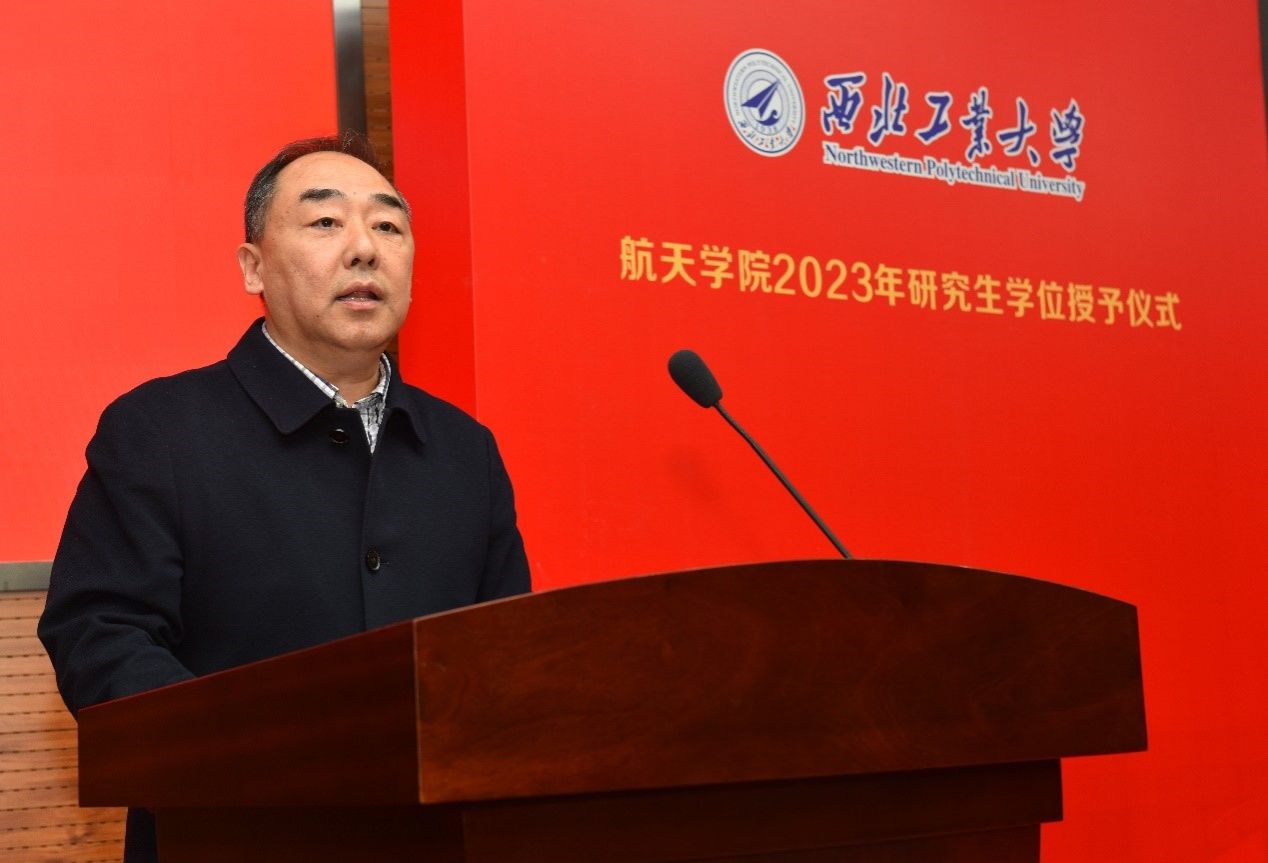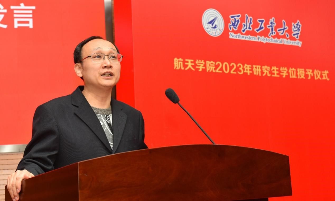 最后,岳晓奎院长发言,向圆满完成学业的同学们表示诚挚的祝贺和良好的祝愿,向老师和家长朋友们致以崇高的敬意和衷心的感谢,并向全体同学表达了三点希望,希望同学们要坚定“四个自信”,涵养“乱云飞渡仍从容”的坚强定力,保持战略定力,坚定信仰信念,挺起“泰山压顶不弯腰”的脊梁,用实际行动证明,新时代的航天青年是和先辈一样可堪大用、能担重任的栋梁;希望同学们要心怀“国之大者”,肩负“天将降大任于斯人”的使命担当,学会观大势、明大局,学会讲奉献、养正气,学会求真知、练真材,在摸爬滚打、千锤百炼中扎实稳健迅速成长;希望同学们要勇于开拓创新,保持“不日新者必日退”的清醒认识,有“干惊天动地事,做隐姓埋名人”的品格,坐得住“冷板凳”,把得住“大方向”,以持之以恒的耐心和毅力不断前行,矢志创新。