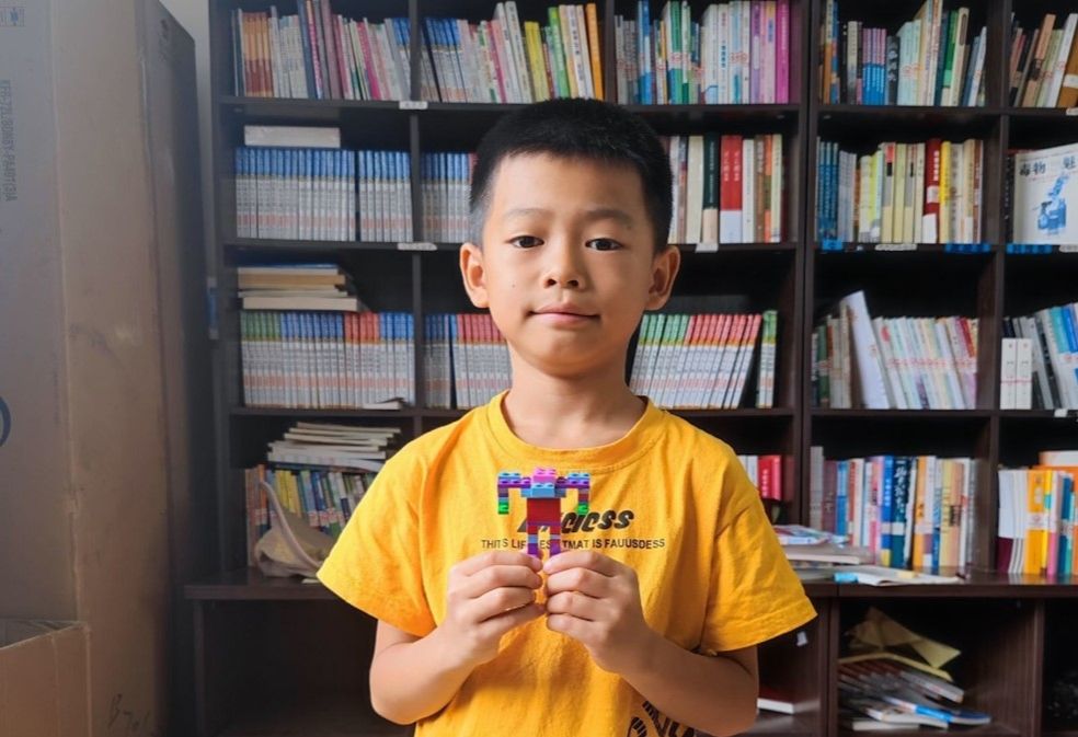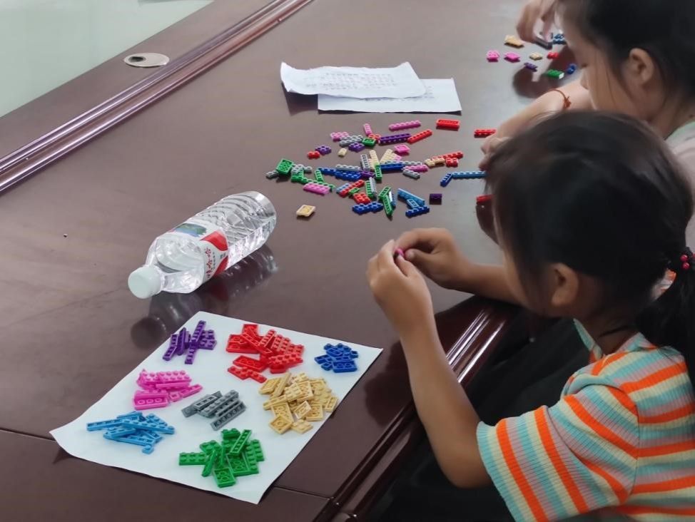 实践队队员牙泓霖为低年级同学们介绍了拼搭积木比赛规则,同学们积极发挥想象,自主设计打造出了飞机、坦克、机器人和房子等造型。