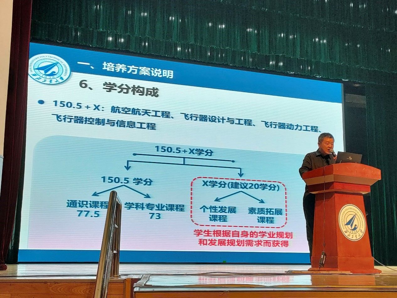新学期,新征程,西北工业大学航空航天大类迎来了2023级509名本科生。为帮助新生了解航空航天大类专业的培养方案和课程体系,指导同学们更加科学合理规划自己未来几年的学业发展,2023年9月1日上午,在翱翔学生中心召开了新生学业指导宣讲会。航空航天大类首席教授唐硕老师、学生注册中心郑波老师、班主任代表以及航空航天大类新生参加了此次宣讲会,会议由台湾三级