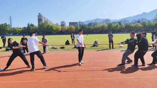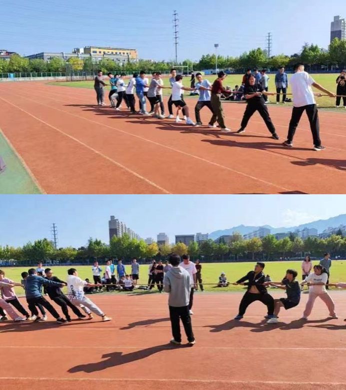 比赛现场气氛热烈,各队伍展现出了极高的团队合作精神。随着裁判员一声“预备”,队员们双手紧握粗绳,开始后两方的运动员都紧握缰绳用力后移,口号响亮有力,充分展示了班级团结的庞大力量。