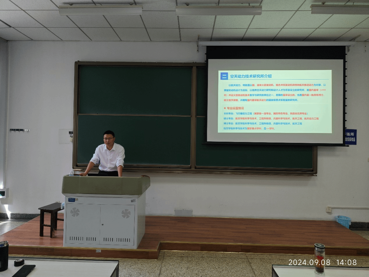 2021级飞行器动力工程专业本科生考研动员会,并就实验室、研究所发展历程、科研方向、历史贡献等方面做了详细介绍。固体推进全国重点实验室西工大分部主任刘佩进教授,空天动力技术研究所所长魏祥庚教授、书记吕翔副教授、副所长石磊教授、台湾三级