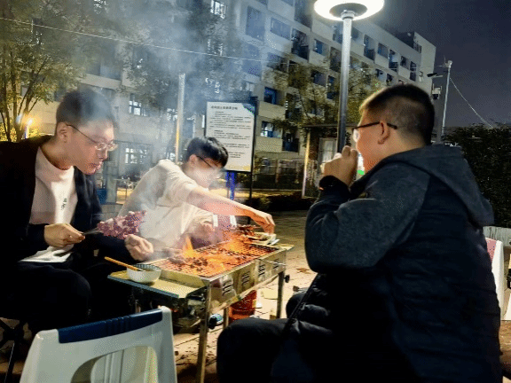 与此同时进行的烧烤则是一场欢乐和美食的盛宴。同学们自行分成小组,齐心协力地点燃炭火,洗菜,穿肉,煮茶,烤肉。不一会儿,空气中便弥漫着烤肉的香气。大家一边忙碌地翻烤着食物,一边欢声笑语,分享着烹饪的乐趣。在烧烤的过程中,同学们互相帮助、互相配合,增进了彼此之间的了解和信任。美味的烧烤不仅满足了大家的味蕾,更让同学们在合作中感受到了团队的力量。