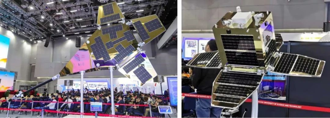 “澳科一号卫星”展示模型(右图为西工大研制部分)